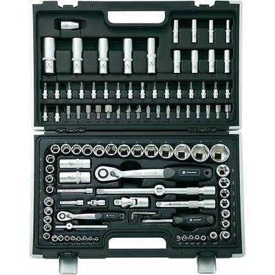 Set de clés à douille complet en acier allié chrome-vanadium de qualité supérieure pour une qualité professionnelle supérieure. La transmission de force des douilles à la tête de vis ne s'effectue pas par les arêtes mais par les flancs. Vous avez ainsi la garantie d'obtenir un couple de serrage élevé sans abîmer les pans fragiles de l'écrou. Cliquets avec 72 dents et déverrouillage des accessoires par pression sur un bouton. Livré dans une malette en plastique solide avec une protection en mousse pour que vos outils soient protégés et restent rangés pendant le transport..