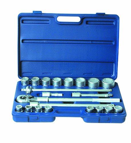 Coffret de douilles 3/4 : 21 Pcs- Douilles 6 pans - Acier au Chrome Vanadium. Triple chromage - Finition mat satine. Composition : 16 douilles (19-21-22-23-24-26-27-29-30-32-35-36-38-41-46-50 mm) 1 cliquet renforce 500 mm 1 poignee coulissante 450 mm 1 rallonge 100 mm 1 rallonge 200 mm 1 rallonge 400 mm