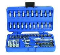 Caisse à outils 131 pièces Module douilles 1/2 de 10 à 32mm avec cardan et rallonges. Module douilles 1/4 de 4 à 14mm avec porte douilles,cardan et rallonges.